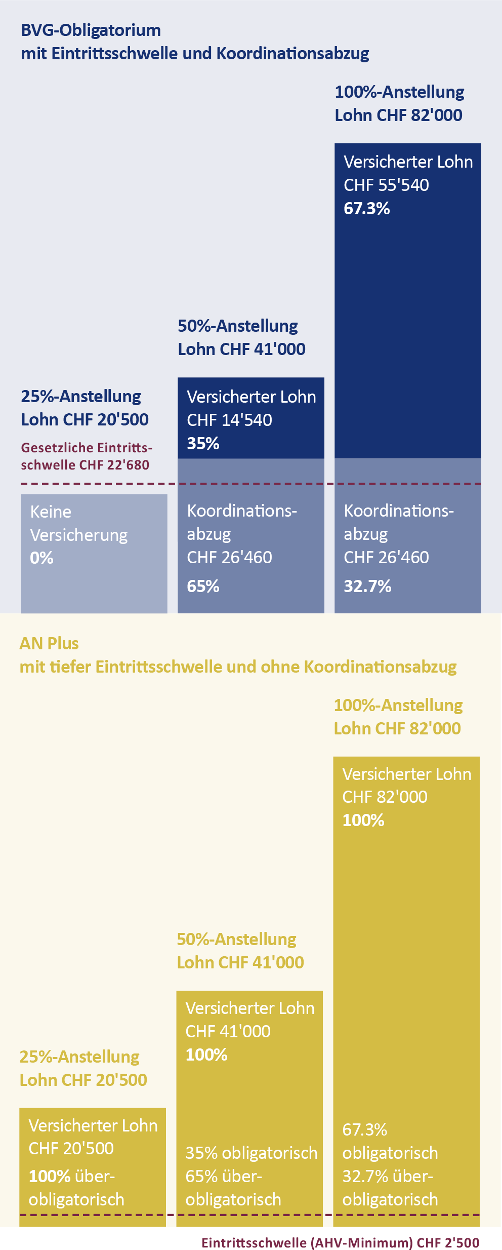 Vergleich Leistungen BVG-Obligatorium und AN Plus